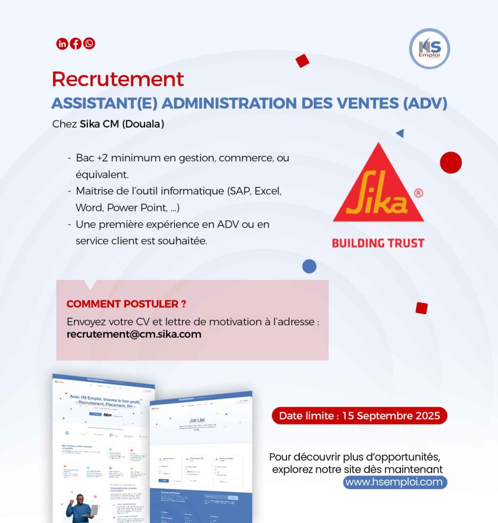 Envoyez votre CV et lettre de motivation à l’adresse : recrutement@cm.sika.com